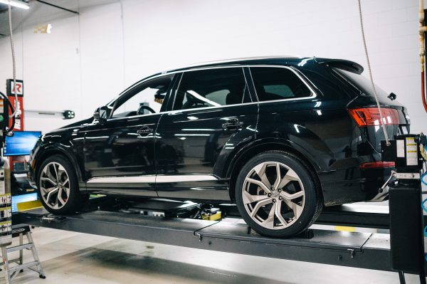 In The Shop Audi Q7 OEM Style Wheel Upgrade Our recent customer wanted the OEM+ look without the OEM price tag for their Audi Q7. We were glad to oblige by mounting and installing this set of 22″ factory styled wheels.